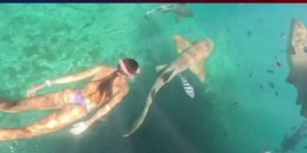 Σύμφωνα με πλάνα που καταγράφηκαν, αρκετοί καρχαρίεςκολυμπούσαν γύρω της, μέχρι που ένας από αυτούς της επιτέθηκε ξαφνικά και δάγκωσε το πόδι της.