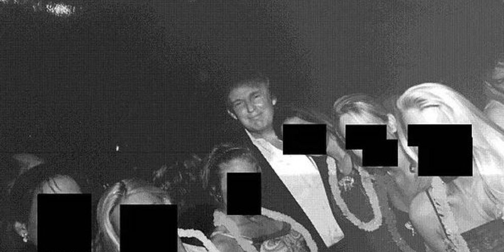 Σε μία από τις φωτογραφίες απεικονίζεται ένα μπολ με προφυλακτικά που φέρουν καρικατούρα του Τραμπ και την ένδειξη «Trump condom - $4.50». Πάνω στη συσκευασία εμφανίζεται το πρόσωπό του και η φράση «I'm HUUUUGE!».