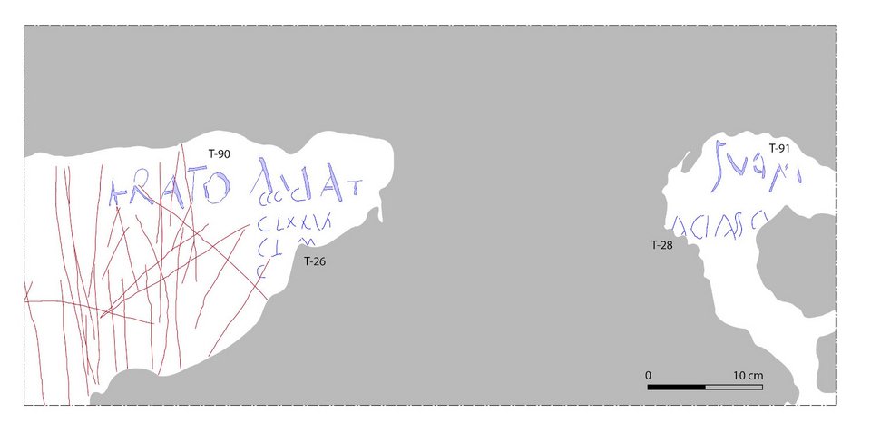 Συνολικά, οι ερευνητές κατέγραψαν περισσότερα από 300 γκράφιτι στον Διάδρομο του Θεάτρου, εκ των οποίων τα 79 δεν είχαν εντοπιστεί ποτέ στο παρελθόν. Ορισμένα από αυτά, όπως εκείνο που αποδίδεται στη μυστηριώδη Ερατώ, αποτελούν μηνύματα ερωτικού περιεχομένου.