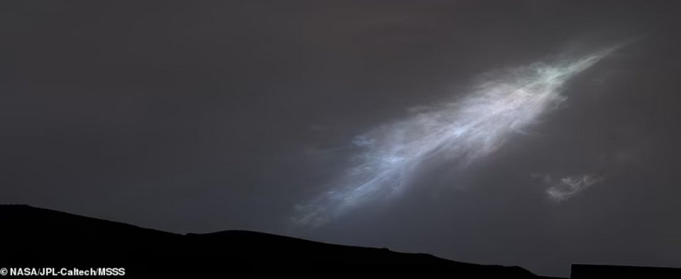 Στις 27 Ιανουαρίου τράβηξε, επίσης, μια σειρά από πολύχρωμα σύννεφα σε σχήμα φτερού. Η εικόνα τα δείχνει να αποκτούν μια εμφάνιση σχεδόν σαν ουράνιο τόξο επειδή έχουν φωτιστεί από το φως του ήλιου σε μια διαδικασία γνωστή ως ιριδισμός.