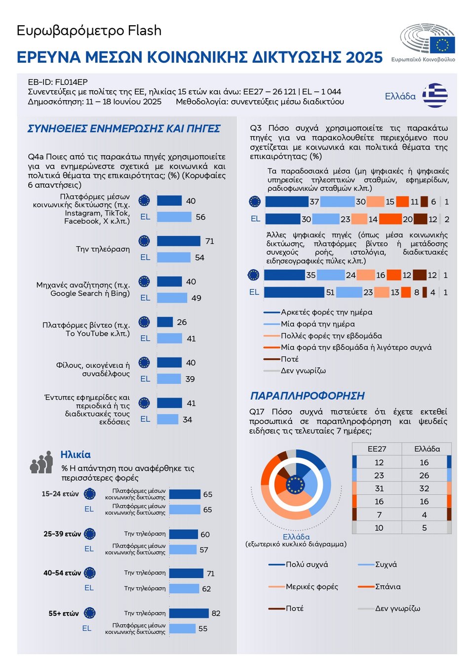 Τα αποτελέσματα της έρευνας flash Ευρωβαρόμετρο «Social Media 2025», που διεξήχθη τον Ιούνιο του 2025, δημοσίευσε το Ευρωπαϊκό Κοινοβούλιο.