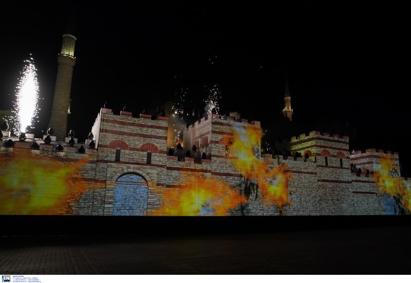 Μετά την ανάγνωση της προσευχής και μετά από ομιλία του Ρετζέπ Ταγίπ Ερντογάν, προβλήθηκε στο «τείχος» που είχε στηθεί, αναπαράσταση της Αλωσης της Κωνσταντινούπολης.