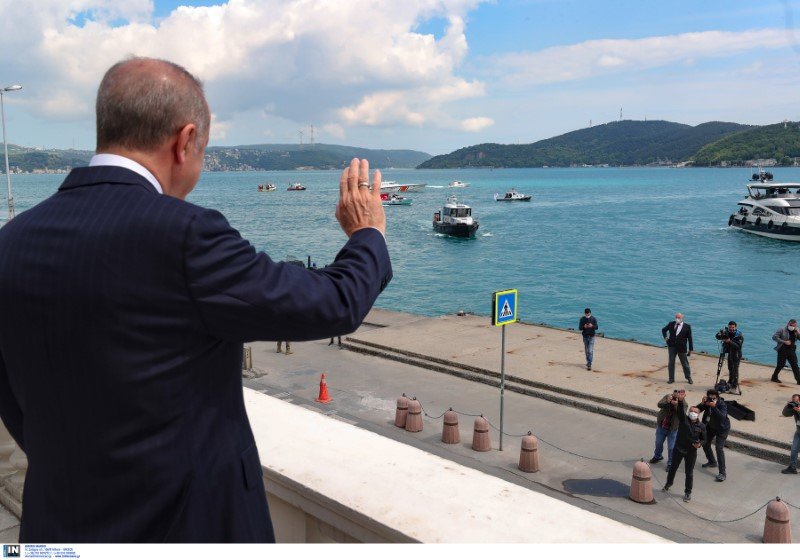 Δείτε εικόνες από το πρωινό «σόου» Ερντογάν μπροστά από το σπίτι του στο Βόσπορο