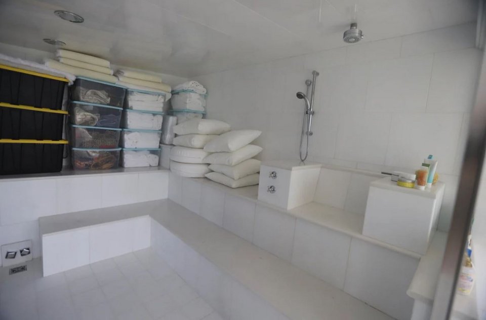 Άλλες φωτογραφίες απεικονίζουν διάφορους χώρους, όπως υπνοδωμάτια, μπάνια, καθώς και έναν χώρο με έπιπλο που μοιάζει με οδοντιατρική καρέκλα, ενώ εμφανίζεται και ένα τηλέφωνο με ονόματα καταχωρημένα στην ταχεία κλήση.