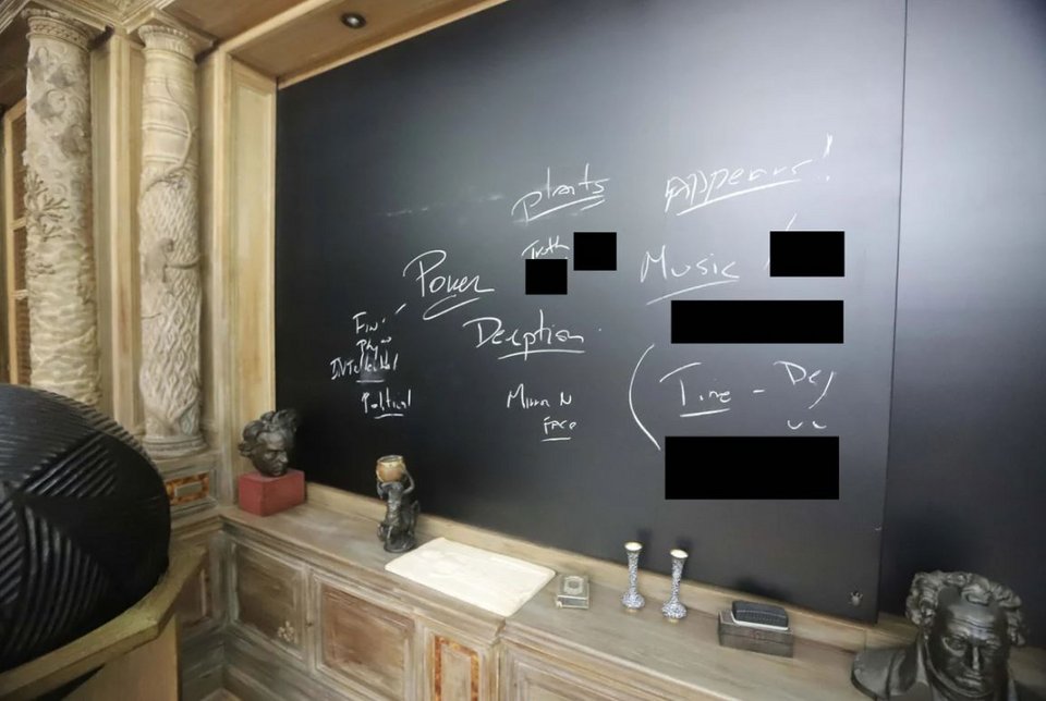 Βίντεο καταγράφουν τους χώρους ενός σπιτιού που μοιάζει με πολυτελές θέρετρο, με πισίνα, φοίνικες και ένα μονοπάτι με θέα στον ωκεανό. Μια φωτογραφία φαίνεται να καταγράφει ένα γραφείο με έναν μαυροπίνακα, που πάνω του είναι γραμμένες λέξεις, όπως «δύναμη», «απάτη», «αλήθεια», «μουσική» και «πολιτική».