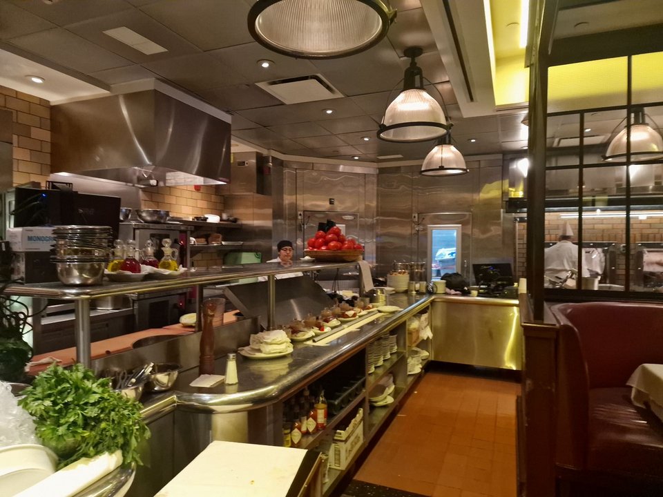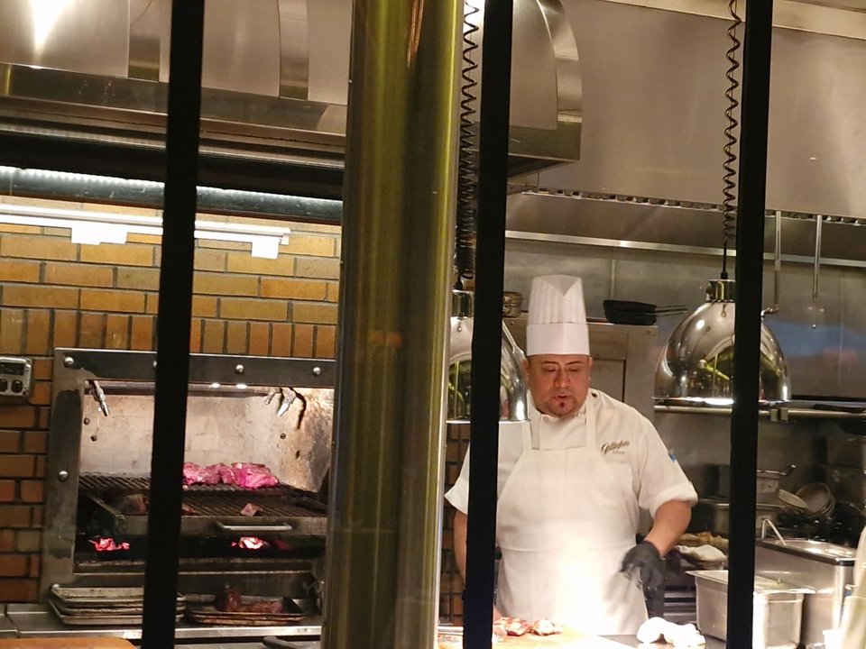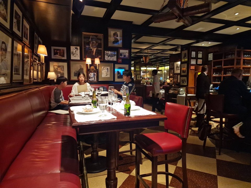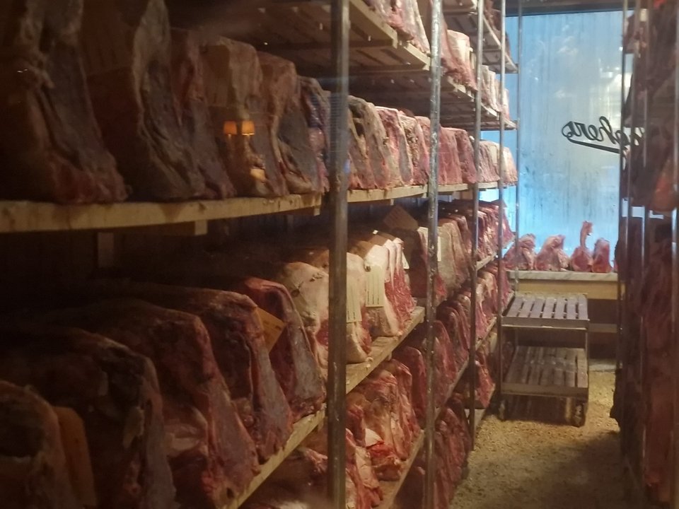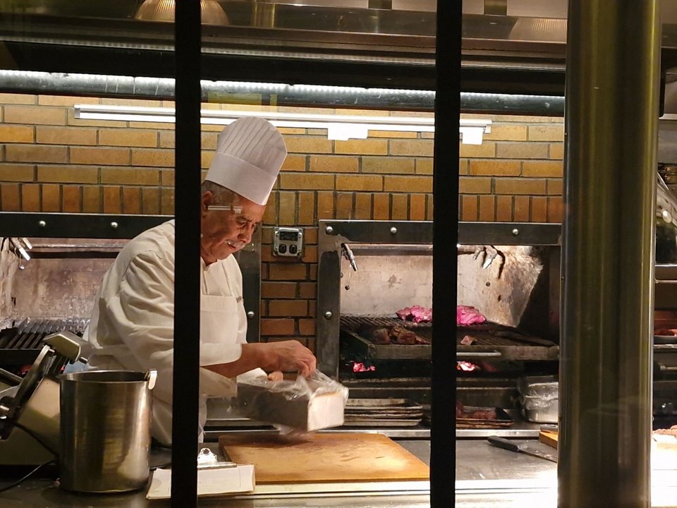 Στην εντυπωσιακή σάλα, τα τραπέζια γεμίζουν το ένα μετά το άλλο ενώ στη μια πλευρά μια οθόνη είναι συντονισμένη στα νέα του χρηματιστηρίου. Αριστερά της εισόδου σε ένα τεράστιο δωμάτιο-ψυγείο ωριμάζουν τα κρέατα πριν βρεθούν στην κουζίνα στο βάθος του εστιατορίου όπου οι σεφ με τα χαρακτηριστικά καπέλα τους πηγαινοέρχονται ασταμάτητα.
