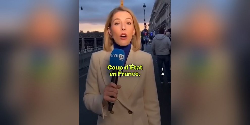 «Πραξικόπημα στη Γαλλία», «διαδηλωτές συγκεντρώνονται για να στηρίξουν τον συνταγματάρχη που ανέλαβε χθες την εξουσία» έλεγαν τέσσερις υποτιθέμενοι Γάλλοι δημοσιογράφοι στο βίντεο που έφτιαξε ο νεαρός με τη βοήθεια της Τεχνητής Νοημοσύνης.