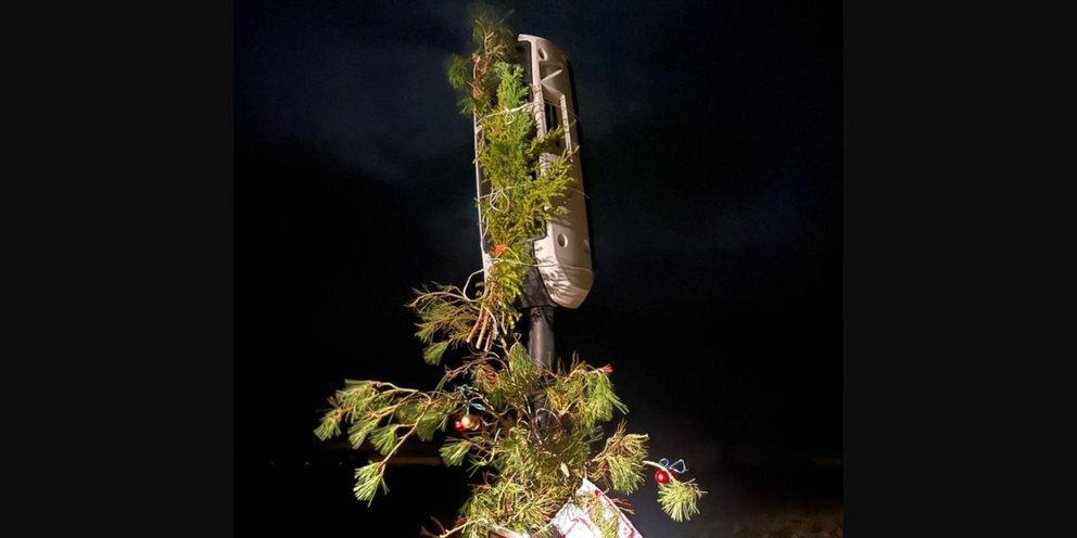Απέναντι σε ένα παράξενο άλλα αρκετά εντυπωσιακό θέαμα βρέθηκαν οι οδηγοί που πέρασαν από την συγκεκριμένη περιοχή, αφού είδαν τα ραντάρ ταχύτητας των δρόμων να είναι στολισμένα… με χριστουγεννιάτικα.