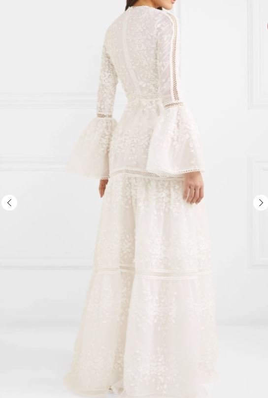 Όπως αναφέρει η Dailymail, το νυφικό είναι του οίκου Costarellos και κοστίζει 2.870 λίρες. Ιδρυτής και σχεδιαστής είναι ο Χρήστος Κωσταρέλλος. Άνοιξε το πρώτο κατάστημά του στην Ελλάδα το 1998 και πάντα τα νυφικά του ήταν έργα τέχνης, καθώς δίνει έμφαση στις λεπτομέρειες. Ο γνωστός σχεδιαστής το 2000 άνοιξε δύο ακόμη ατελιέ.
