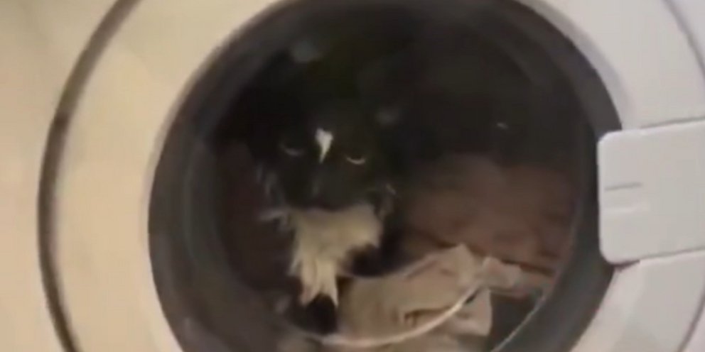 Η γάτα εγκλωβίστηκε στο πλυντήριο ρούχων