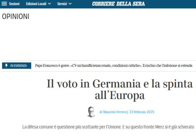 Corriere della Sera: «Οι εκλογές στη Γερμανία και η ώθηση στην Ευρώπη»