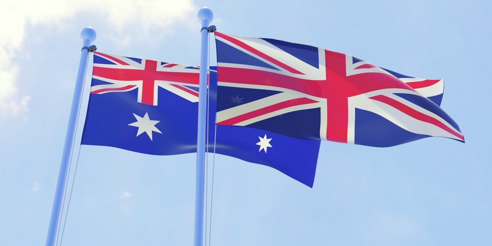 Η σημαία της Αυστραλίας έχει την βρετανική σημαία (Union Jack) στην άνω αριστερή γωνία (για την ιστορική σύνδεση με το Ηνωμένο Βασίλειο).