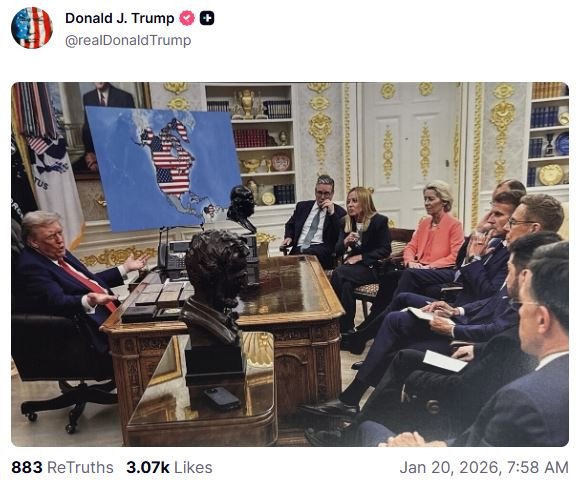 Και δεύτερη ΑΙ εικόνα από τον Τραμπ για τη Γροιλανδία ενώ μιλάει σε Ευρωπαίους ηγέτες