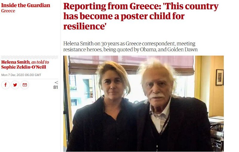 Τριάντα χρόνια συμπλήρωσε η ανταποκρίτρια του Guardian στην Eλλάδα κι η βρετανική εφημερίδα αποφάσισε να την τιμήσει με μια συνέντευξη, στην οποία η Έλενα Σμιθ μιλά για τα βιώματα και τις δυσκολίες που συνάντησε ως ρεπόρτερ στην Αθήνα, για σημαντικές στιγμές της καριέρας της, την υπόθεση της Χρυσής Αυγής, την κρίση χρέους και το δέσιμό της με τη χώρα μας.