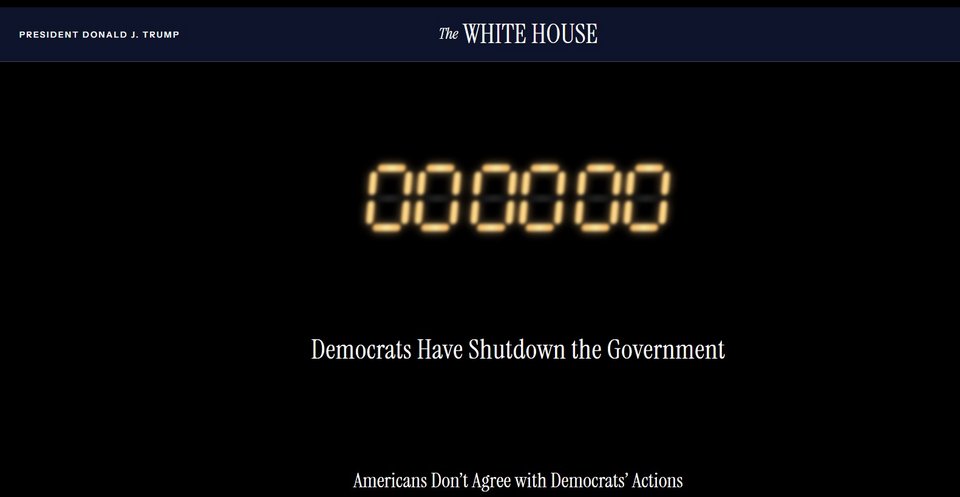 Λίγο μετά το shutdown η κυβέρνηση του Ντόναλντ Τραμπ έσπευσε να κατηγορήσει τους Δημοκρατικούς, όπως αποτυπώνεται στην ιστοσελίδα του Λευκού Οίκου.