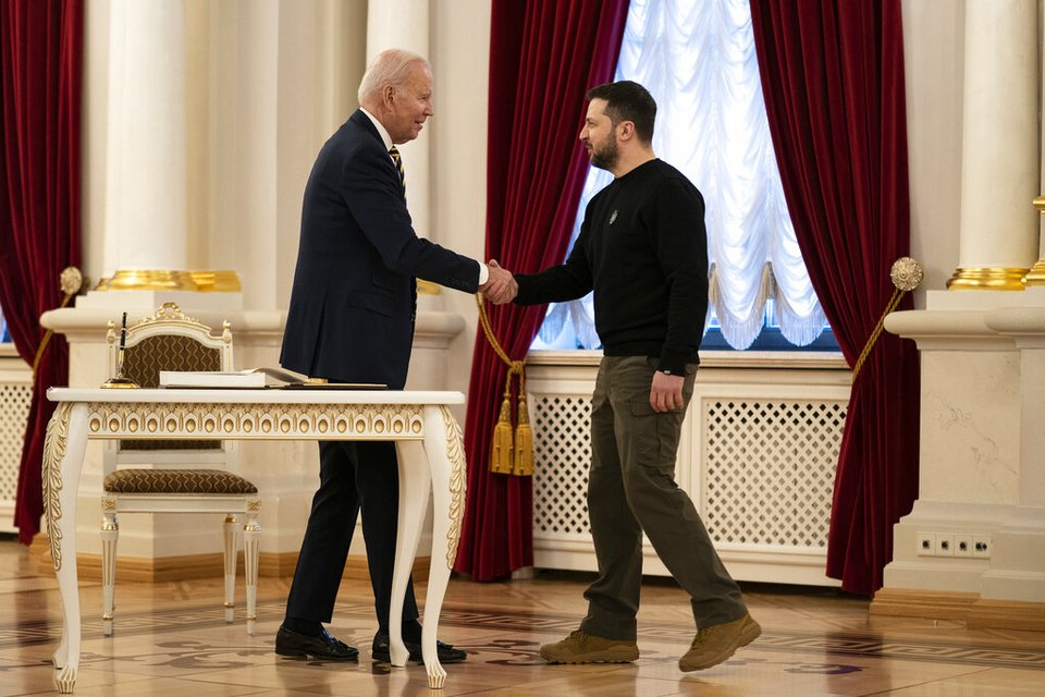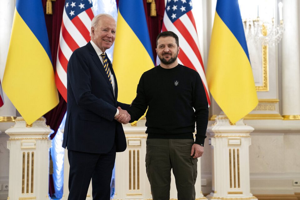 Στην κοινή συνέντευξη Τύπου με τον Ζελένσκι στο μέγαρο Μαριίνσκι ο Μπάιντεν ανακάλεσε στη μνήμη τους φόβους πριν από έναν χρόνο ότι οι δυνάμεις της Ρωσίας πιθανώς θα καταλάμβαναν γρήγορα το Κίεβο.
