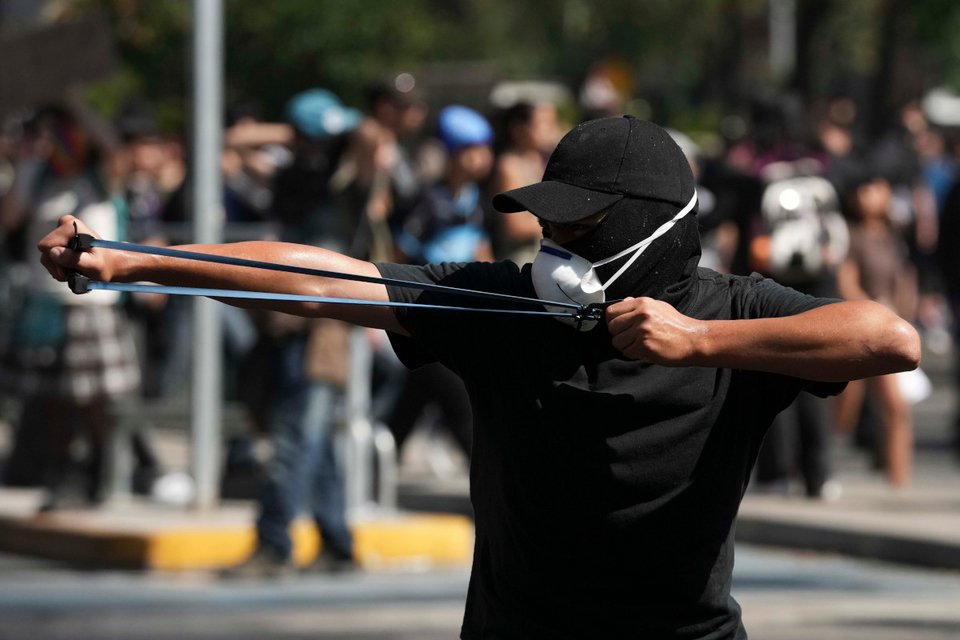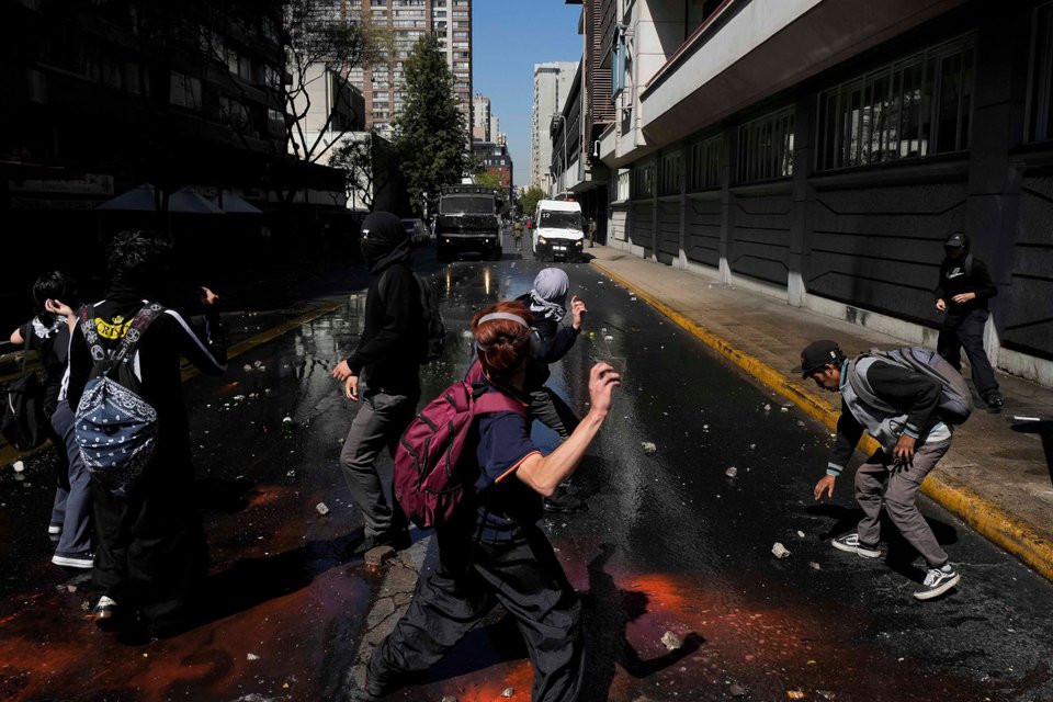 Οι διαδηλωτές, ανάμεσά τους πολλοί μαθητές λυκείου με σχολικές στολές, έκαναν πορεία στο κέντρο της πρωτεύουσας της Χιλής, προτού τους απωθήσει η αστυνομία κάνοντας χρήση αντλιών νερού υπό πίεση.