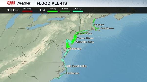 Σύμφωνα με πληροφορίες του CNN, πάνω από 40 εκατομμύρια άνθρωποι στις ανατολικές πολιτείες βρίσκονται σε κατάσταση συναγερμού για πλημμύρες στις παράκτιες περιοχές, καθώς ισχυροί άνεμοι ωθούν το νερό προς την ακτή.