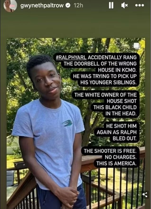 Σε παρόμοια ανάρτηση προχώρησε και το διάσημο μοντέλο Ναόμι Κάμπελ, δημοσιεύοντας μια φωτογραφία του Γιαρλ και γράφοντας: «Ο λευκός ιδιοκτήτης του σπιτιού πυροβόλησε αυτό το μαύρο παιδί στο κεφάλι. Τον πυροβόλησε ξανά καθώς ο Ραλφ αιμορραγούσε. Ο δράστης είναι ελεύθερος. Χωρίς κατηγορίες. Αυτή είναι η Αμερική».