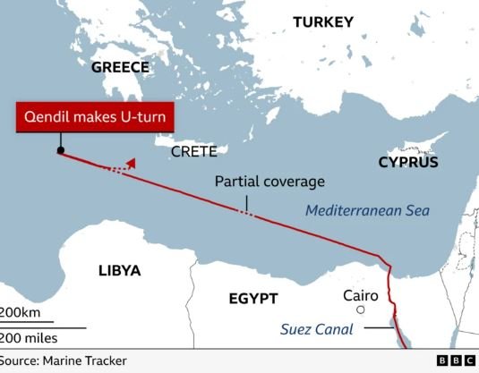 Σύμφωνα με στοιχεία παρακολούθησης πλοίων που επικαλούνται διεθνή μέσα, το «Qendil» είχε ξεκινήσει τις προηγούμενες εβδομάδες από ρωσικό λιμάνι, μεταφέροντας φορτίο πετρελαίου προς την Ασία. Αφού ολοκλήρωσε την παράδοση, φέρεται να διέσχισε τη Διώρυγα του Σουέζ και να εισήλθε στη Μεσόγειο Θάλασσα, πλέοντας πλέον χωρίς φορτίο.