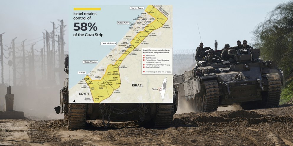 Με βάση τη συμφωνία για την εκεχειρία προς το παρόν, το Ισραήλ διατηρεί τον έλεγχο άνω του 80% της Γάζας — περιοχής έκτασης 365 τ.χλμ.