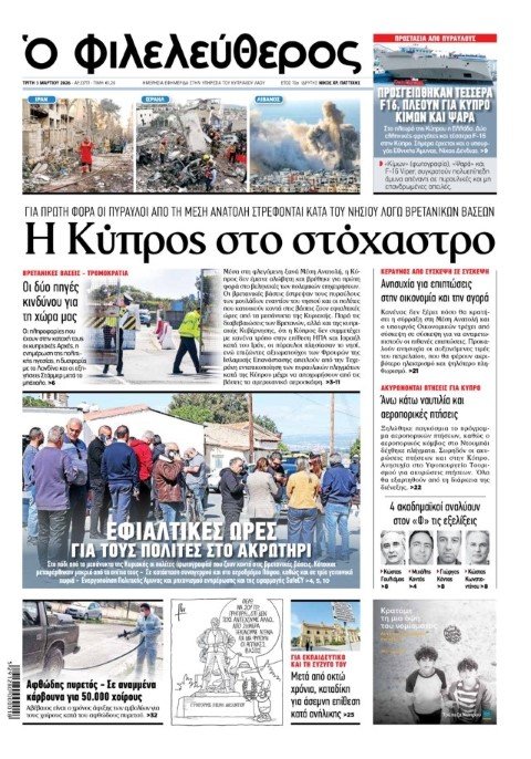 Για πρώτη φορά οι πύραυλοι από τη Μέση Ανατολή στρέφονται κατά του νησιού λόγω των βρετανικών βάσεων, γράφει χαρακτηριστικά η εφημερίδα «Φιλελεύθερος».