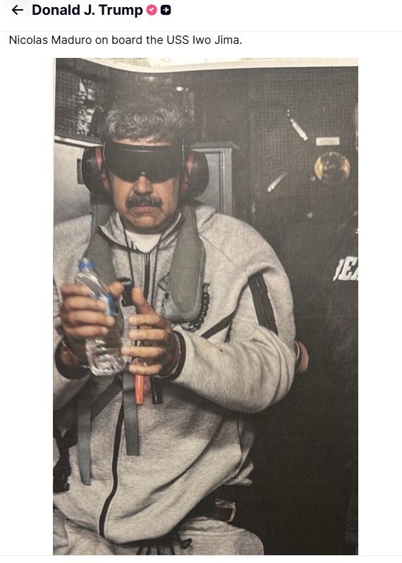 Ο Ντόναλντ Τραμπ έδωσε στη δημοσιότητα φωτογραφία του Νικολάς Μαδούρο, στην οποία ο ηγέτης της Βενεζουέλας εμφανίζεται υπό κράτηση.