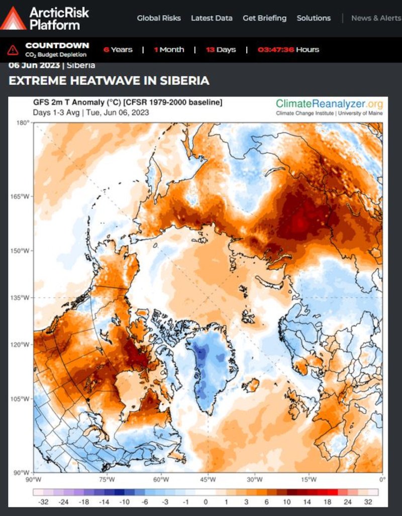 Υψηλές θερμοκρασίες, άνω των 24 βαθμών Κελσίου, καταγράφηκαν και πάνω από τον Αρκτικό Κύκλο στη Σιβηρία, γεγονός που προκαλεί ιδιαίτερη ανησυχία γιατί μπορεί να προκαλέσει περαιτέρω λιώσιμο του μόνιμα παγωμένου υπεδάφους.