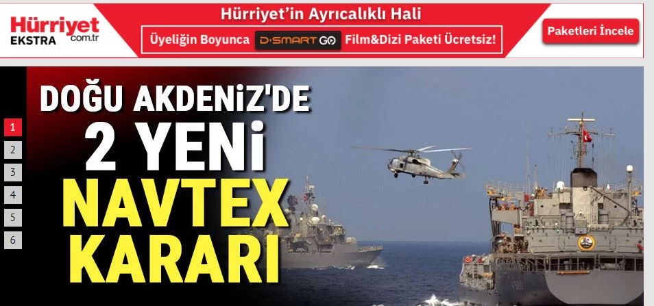 Η Τουρκία εξέδωσε το βράδυ της Τετάρτης δύο NAVTEX για ρωσικές ασκήσεις με πραγματικά πυρά στην Ανατολική Μεσόγειο.