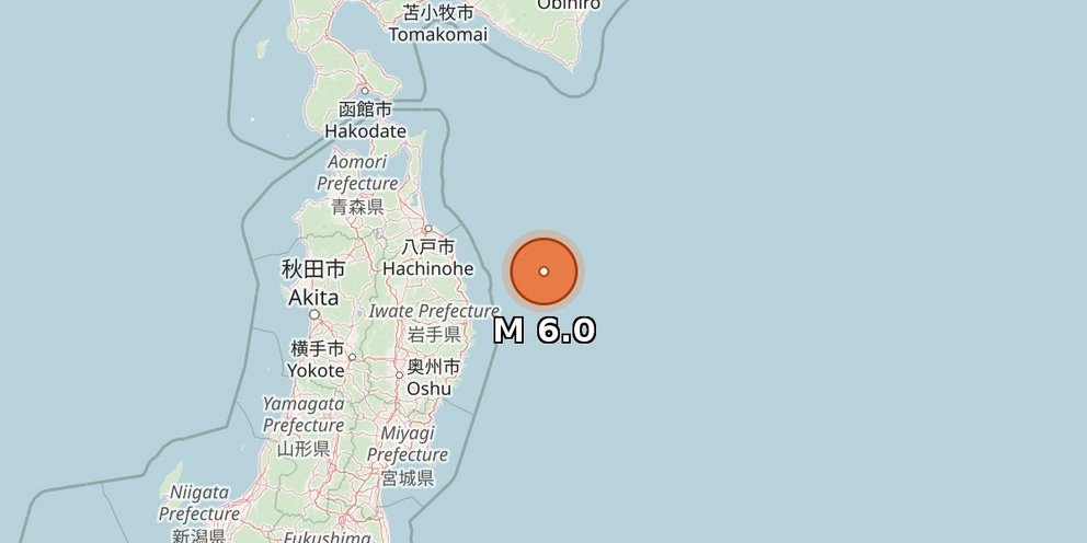 Σεισμός μεγέθους 6 βαθμών της κλίμακας ρίχτερ σημειώθηκε στα ανοιχτά των ακτών της ανατολικής επαρχίας Νόντα στην Ιαπωνία.