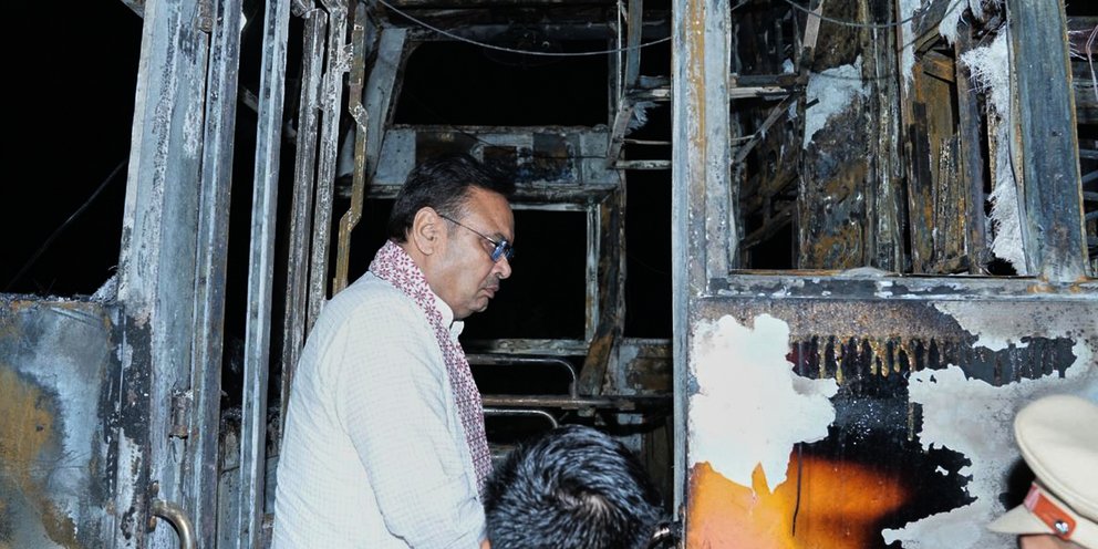 Σύμφωνα με το πρακτορείο ειδήσεων Press Trust of India, που μετέδωσε τον ίδιο απολογισμό, το λεωφορείο σταμάτησε στην άκρη δρόμου επειδή έβγαινε καπνός από το πίσω μέρος του, προτού το τυλίξουν φλόγες μέσα σε πολύ μικρό χρονικό διάστημα.