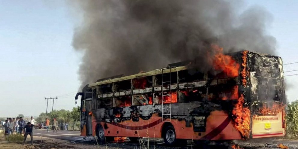 Τουλάχιστον 19 άνθρωποι σκοτώθηκαν όταν ένα ιδιωτικό λεωφορείο τυλίχθηκε στις φλόγες στο κρατίδιο Ρατζαστάν της δυτικής Ινδίας.