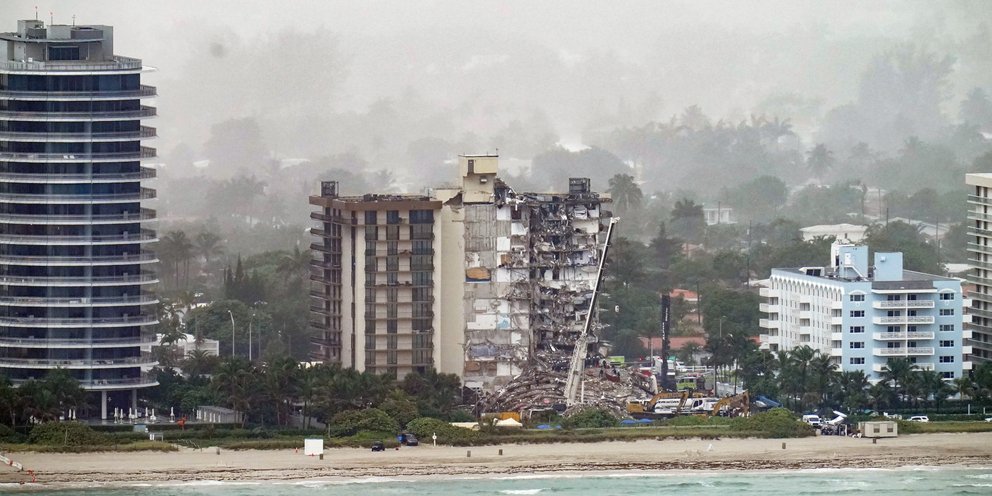 Το μεγαλύτερο μέρος της πολυκατοικίας κατέρρευσε, από ακόμη εν πολλοίς ανεξήγητη αιτία, τη νύχτα της 24ης Ιουνίου. Ό,τι απέμενε όρθιο από την πολυκατοικία κατεδαφίστηκε με ελεγχόμενο τρόπο το βράδυ της περασμένης Κυριακής, καθώς η αστάθειά του ήγειρε κίνδυνο για τη ζωή των μελών των σωστικών συνεργείων. Οι ομάδες μπόρεσαν κατόπιν να συνεχίσουν την έρευνα σε σημεία μέχρι τότε απρόσιτα.