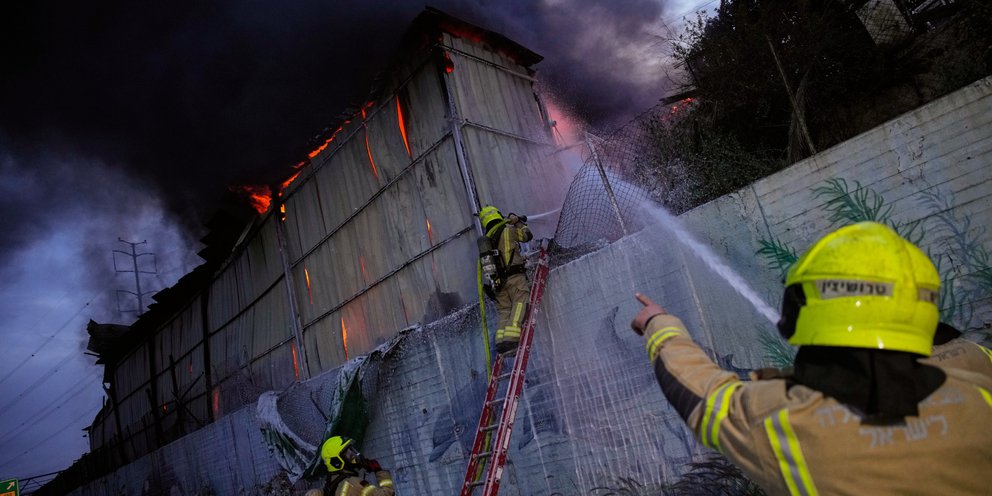 Από τις επιθέσεις έχουν προκληθεί εκτενείς ζημιές στο Ισραήλ, ενώ κτίρια και μία πολυκατοικία έχουν πιάσει φωτιά από τα πλήγματα.