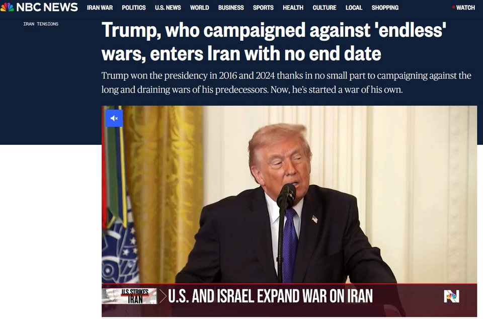 Διεθνή Μέσα καταγράφουν ότι ο πρόεδρος των ΗΠΑ, παρά την προεκλογική του ρητορική κατά των «ατέρμονων πολέμων», έχει εμπλακεί σε νέο πόλεμο με το Ιράν, προκαλώντας ήδη θύματα μεταξύ Αμερικανών στρατιωτών και αυξημένη ένταση στη Μέση Ανατολή, με τους στόχους και τη διάρκεια της επιχείρησης να παραμένουν ασαφείς.