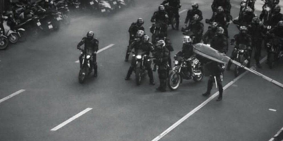 Το βίντεο αποτυπώνει έναν άνδρα καθισμένο στη μέση του δρόμου στην Τεχεράνη, μπροστά σε ένα πλήθος αστυνομικών με μοτοσικλέτες, κατά τη διάρκεια πρόσφατων διαδηλώσεων στη χώρα. Η εικόνα του άνδρα, ακίνητου και με το κεφάλι σκυμμένο, ενώ πίσω του το πλήθος τρέχει να ξεφύγει από τα δακρυγόνα, θυμίζει έντονα τη διάσημη σκηνή από την πλατεία Τιενανμέν στην Κίνα το 1989, όταν ένας άνδρας στάθηκε μπροστά σε έναν οπλισμένο στρατό, ζητώντας αλλαγή.
