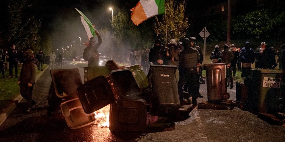 Πλάνα που δημοσιεύτηκαν στα μέσα κοινωνικής δικτύωσης έδειχναν διαδηλωτές να εκτοξεύουν κροτίδες και πυροτεχνήματα εναντίον της αστυνομίας στο Δουβλίνο. Δύο αστυνομικοί μεταφέρθηκαν στο νοσοκομείο για ιατρική περίθαλψη αφού ο ένας χτυπήθηκε στο κεφάλι με ένα μπουκάλι και ένας άλλος υπέστη τραυματισμό στο χέρι και τον ώμο, ανέφερε η ιρλανδική αστυνομία γνωστή ως An Garda Siochana σημειώνοντας ότι στα επεισόδια πρωτοστάτησαν κυρίως νεαροί ενήλικες άνδρες και έφηβοι.