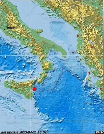Όπως μεταδίδουν τα μέσα ενημέρωσης της Ιταλίας, η σεισμική δόνηση που καταγράφηκε στις 14:06 το μεσημέρι, τοπική ώρα, στην περιοχή της Κατάνης, έγινε αισθητή σε όλη την Σικελία και πολλοί κάτοικοι βγήκαν έντρομοι στους δρόμους.