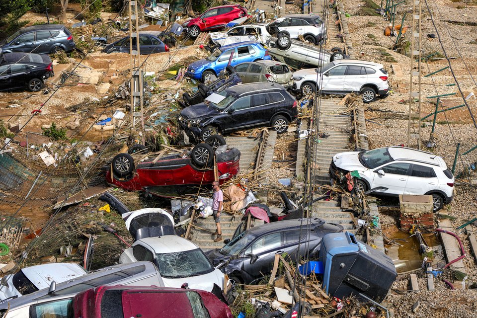 Οι πλημμύρες που έπληξαν τμήματα της ανατολικής Ισπανίας κατέστρεψαν κτίρια και υποδομές, παρασύροντας αυτοκίνητα και συσσωρεύοντας συντρίμμια στους δρόμους.