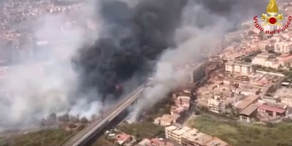 Πάνω από 140 εστίες πυρκαγιών κλήθηκαν να αντιμετωπίσουν οι πυροσβέστες στη Σικελία. Εικόνες από ελικόπτερο καταγράφουν την προέλαση του πύρινου εφιάλτη με τις φλόγες να φθάνουν μέχρι την Κατάνη, με αποτέλεσμα να εκκενωθούν δεκάδες κατοικίες στη συνοικία Φόσα Κρέτα, να διακοπεί η κυκλοφορία σε μεγάλους δρόμους της πόλης.