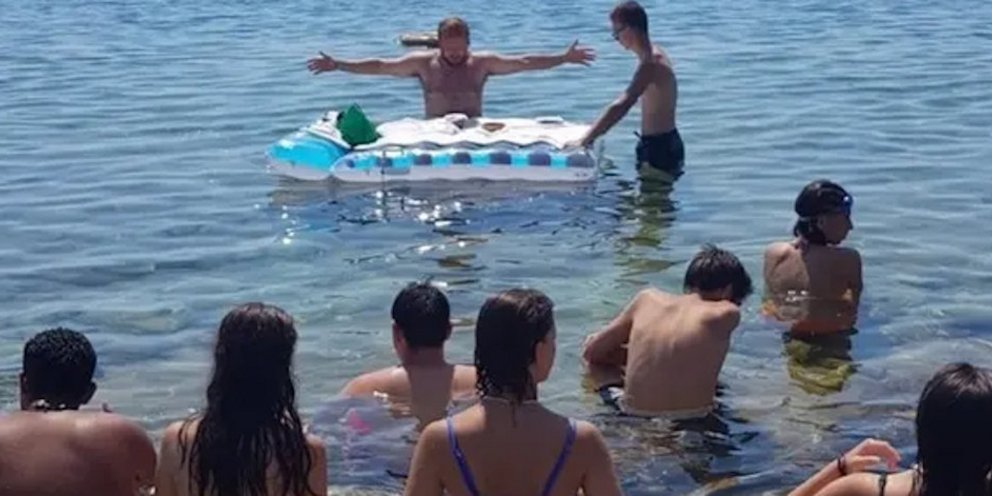 Σάλος έχει προκληθεί στην Ιταλία καθώς ένας ιερέας πραγματοποίησε την κυριακάτικη λειτουργία, ενώπιον μαθητών, μέσα στη θάλασσα χρησιμοποιώντας ως Αγία Τράπεζα ένα... φουσκωτό στρώμα!