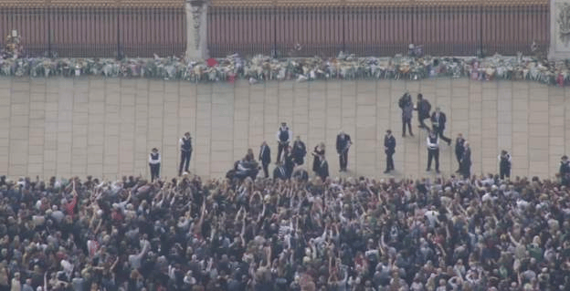 «Το πλήθος περίμενε με αγωνία την άφιξη του νέου βασιλιά στο παλάτι του Μπάκιγχαμ.