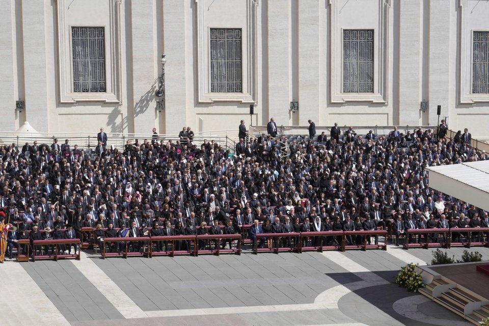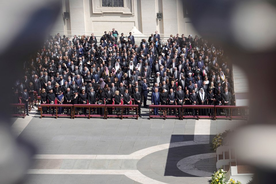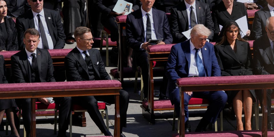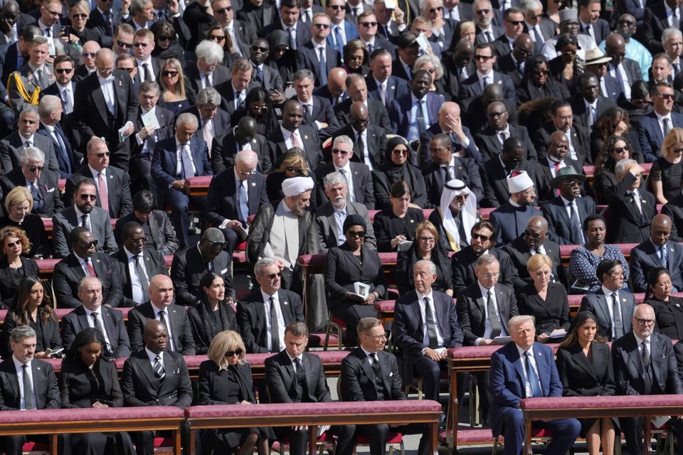 Ο πρόεδρος των ΗΠΑ κάθισε μαζί με άλλους αρχηγούς κρατών στην πρώτη σειρά, κοντά στα σκαλιά της Βασιλικής του Αγίου Πέτρου. Και είναι ενδιαφέρον, γράφει το BBC, ότι ο ίδιος και η Πρώτη Κυρία Μελάνια κάθονται ανάμεσα σε δύο ένθερμους υποστηρικτές της Ουκρανίας.