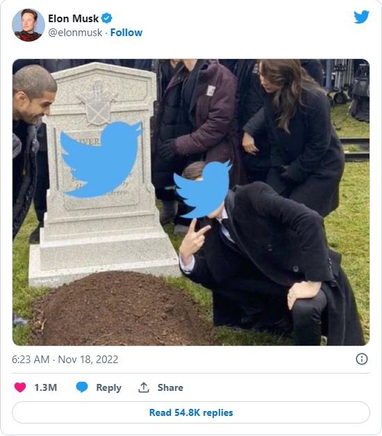 Η αντίδραση του Έλον Μασκ στο χάος που έχει δημιουργηθεί στο Twitter από τότε που ανέλαβε τα ηνία της πλατφόρμας ήταν να αναρτήσει μια φωτογραφία του logo πάνω σε μια... ταφόπλακα.