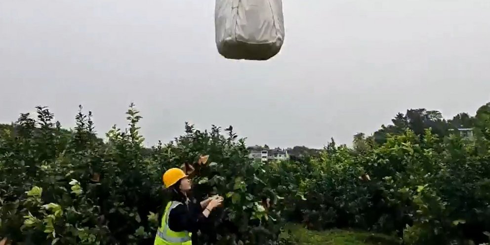 Σε έναν οπωρώνα στο χωριό Σουικού της περιοχής Τονγκνάν στα νοτιοδυτικά της πόλης Τσονγκτσίνγκ, τόσο ο Λιου, όσο κι άλλοι χωρικοί μαζεύουν τα ώριμα λεμόνια τα οποία μεταφέρονται πλέον από τα δέντρα με τη χρήση υπερσύγχρονων drones που υπερίπταται με απόλυτη ακρίβεια πάνω από τις λεμονιές, διαθέτοντας έναν τηλεσκοπικό γάντζο που μπορεί να μεταφέρει ένα σάκο με φρεσκοκομμένα λεμόνια.