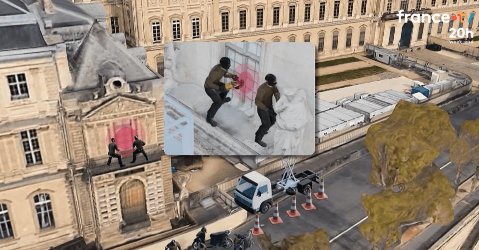 Τα μέχρι στιγμής γνωστά στοιχεία για την «κλοπή του αιώνα» στο Μουσείο του Λούβρου αποτύπωσε σε γραφική αναπαράσταση η δημόσια γαλλική τηλεόραση.
