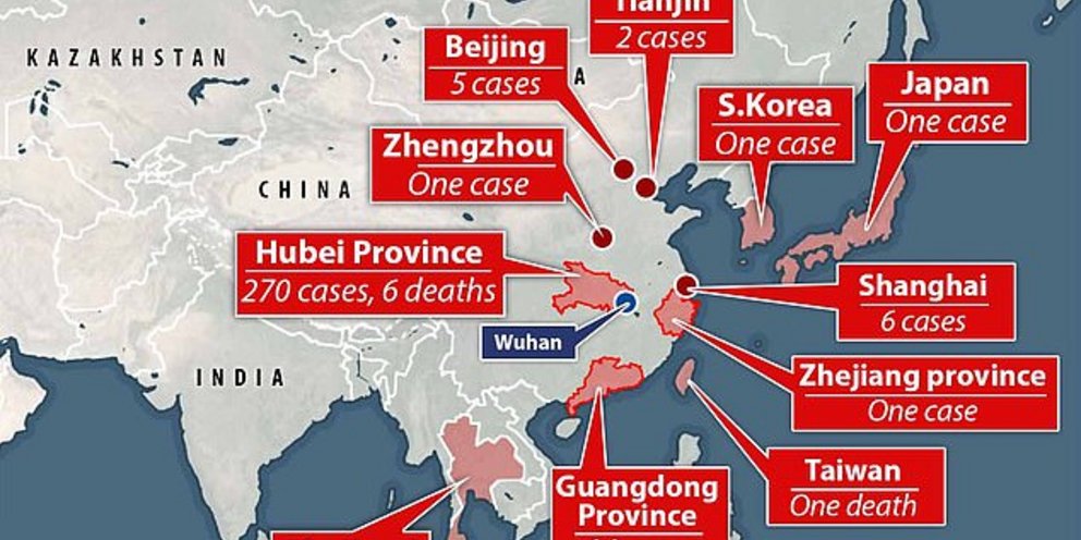 Η αλυσίδα μετάδοσης του κοροναϊού ξεκίνησε, όπως πιστεύεται, από την πόλη Βουχάν της κεντρικής Κίνας, όπου έχουν καταγραφεί 291 κρούσματα -71 τις τελευταίες ώρες - και είναι υπό στενή παρακολούθηση άλλα 900 άτομα. Στο μεταξύ έχουν εντοπιστεί κρούσματα και σε άλλες περιοχές της Κίνας, στην Ιαπωνία, την Ταϊλάνδη, τη Νότια Κορέα. «Η Βουχάν είναι ένας τεράστιος κόμβος και καθώς αναμένεται μεγάλη αύξηση των ταξιδιωτών στο πλαίσιο του κινεζικού νέου έτους, τα επίπεδα ανησυχίας πρέπει να παραμείνουν υψηλά. Περιμένουμε και άλλα από αυτό το ξέσπασμα» δήλωσε ο Τζέρεμι Φάραρ, ειδικός σε επιδημίες μεταδοτικών ασθενειών και διευθυντής της οργάνωσης Wellcome Trust global.
