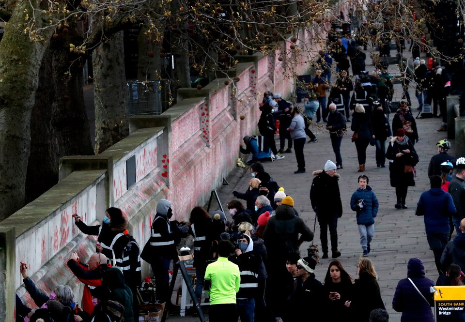 Χρειάζεται δέκα λεπτά για να βαδίσει κανείς κατά μήκος της τοιχογραφίας, ανάμεσα στις γέφυρες Ουέστμινστερ και Λάμπεθ στο Λονδίνο, που ξεκίνησε πριν από λίγες εβδομάδες ο Ματ Φάουλερ, επικεφαλής του πρότζεκτ. Έχασε κι εκείνος τον πατέρα του από τον κορωνοϊό τον Απρίλιο του 2020. «Όταν βλέπεις όλες αυτές τις καρδιές κι αναλογίζεσαι τι αντιπροσωπεύει η κάθε μία, είναι τρομακτικό», λέει.