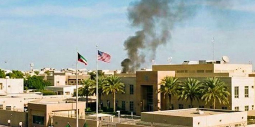 Στήλη πυκνού καπνού υψώνεται από τον τομέα όπου βρίσκεται η αμερικανική πρεσβεία στο Κουβέιτ και στην περιοχή έχουν σπεύσει και επιχειρούν πυροσβέστες.