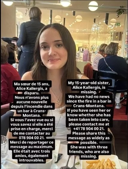 Ελληνίδα 15 ετών, μόνιμη κάτοικος Ελβετίας, συγκαταλέγεται στη λίστα των δεκάδων αγνοουμένων από την τραγωδία στο ελβετικό χιονοδρομικό θέρετρο στο Κραν Μοντανά.